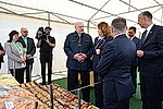 Президент Беларуси Александр Лукашенко 28 августа совершил рабочую поездку в Могилевскую область. Глава государства посетил ОАО "Рассвет им. К.П.Орловского" в Кировском районе. Также в рамках рабочей поездки Президент провел совещание по актуальным вопросам развития картофелеводства в Беларуси.На снимке: во время посещения ОАО "Рассвет им. К.П.Орловского".Фото Яна Горбанюка, БЕЛТА.
